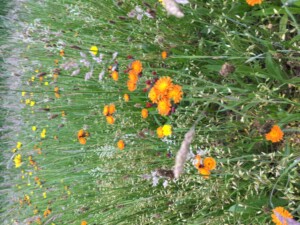 Onder leiding van Bart Willers inventariseren we met de werkgroepleden de wilde planten op onze percelen. We tellen 34 soorten grassen en kruiden in de graslanden en nog 19 andere soorten op de akkerstroken. Bijzondere soorten zijn Duits viltkruid, Rode ogentroost, Bolderik en Rapunzelklokje. Op de akkers zaaiden we vorig najaar een mengsel van wilde akkerkruiden. De velden met Spelttarwe zien er nu feestelijk uit met Gele ganzenbloem, de rode Grote klaproos en de blauwe Korenbloem.