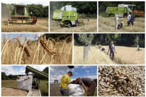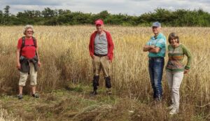 Op een zonnige woensdagochtend hebben zes leden van de werkgroep de planten van melganzevoet en duizendblad tussen het graan uit getrokken. Dat is nodig om het stro zuiver te houden. Daarna is het graan gemaaid en gedorst en naar de opslag gereden. We hebben een mooie opbrengst. We gaan nu de gebruiksmogelijkheden uittesten en afnemers zoeken.