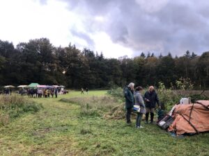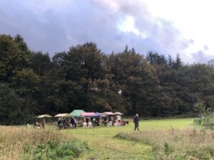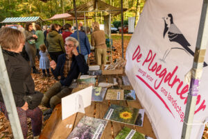 Op een zonnig en met gouden bladeren bezaaid grasveld drommen groepjes geïnteresseerden rond de diverse standjes. Muziek op de achtergrond. Bezoekers zijn levendig in gesprek met de vrijwilligers achter de kramen. Her en der zoeken kinderen ijverig naar gevallen tamme kastanjes. Meermaals stappen toevallige passanten van hun fiets om even een rondje langs de gekleurde kraampjes te doen. Gezelligheid alom.