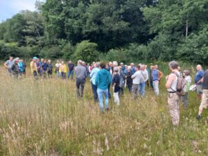 Op de avond van de langste dag van het jaar kwamen 50 belangstellenden naar de Waldboeren. We maakten een wandeling door de bloemrijke graslanden en langs kruidenrijke akkers en houtwallen. Vijf natuurkenners speurden met de deelnemers naar plantensoorten, bijzondere insecten en vogels. We stelden met elkaar vast dat de soortenrijkdom hoog is door natuurlijk beheer en de grote afwisseling van grasland, akker, houtwallen en bosranden.